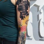 Vzpomínkové tetování zvíře pes, květiny na ruku