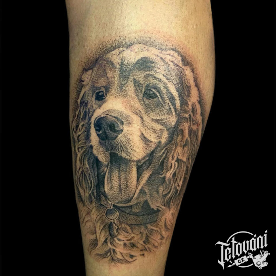 Vzpomínkové tetování zvíře pes na lýtko