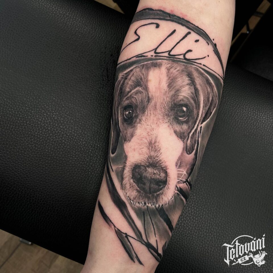 Vzpomínkové tetování zvíře pes na předloktí
