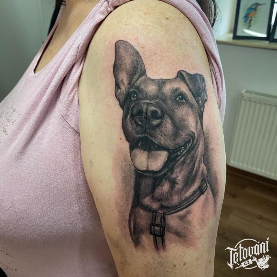 Vzpomínkové tetování zvíře pes na rameno