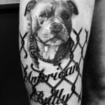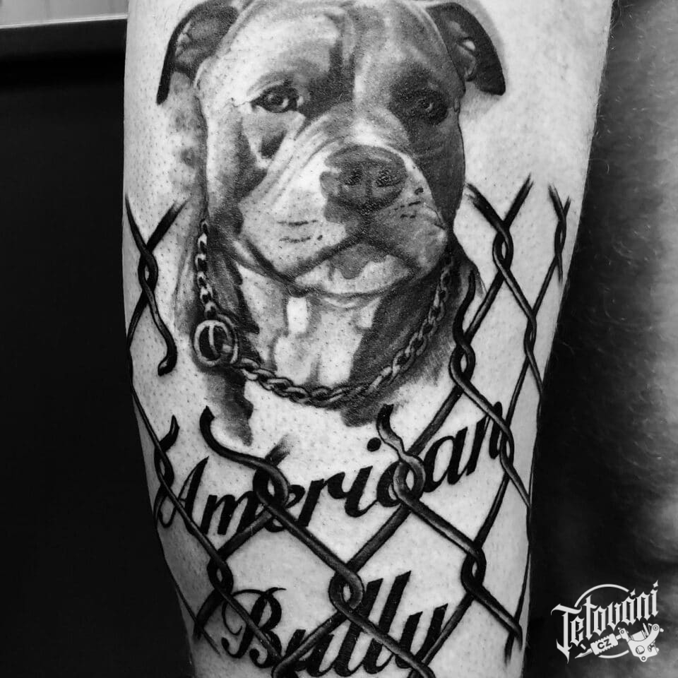 Vzpomínkové tetování zvíře pes, nápis na stehno
