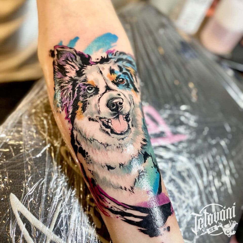 Vzpomínkové tetování zvíře pes, portrét, na předloktí