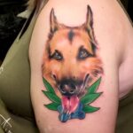 Vzpomínkové tetování zvíře pes, portrét na rameno