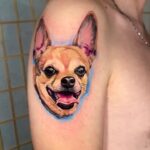 Vzpomínkové tetování zvíře pes, portrét na rameno