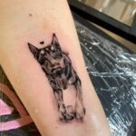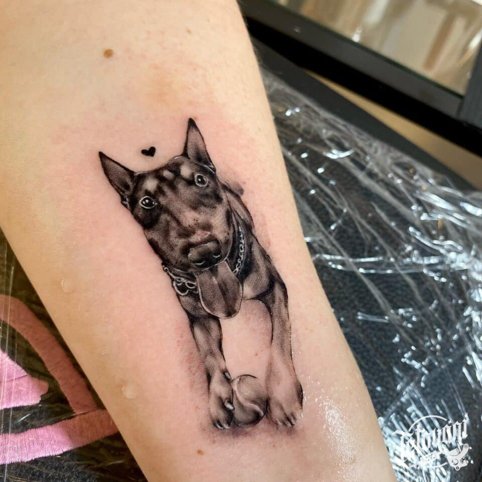 Vzpomínkové tetování, zvíře pes, portrét na stehno