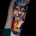 Vzpomínkové tetování zvíře pes, portrét, příroda, les na lýtko