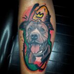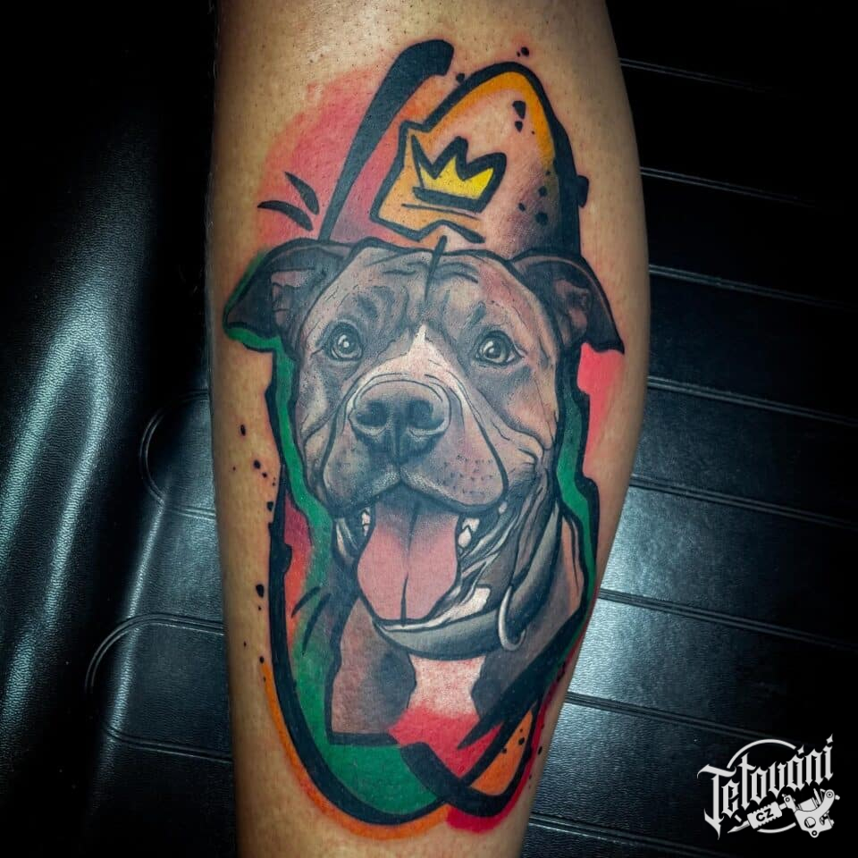 Vzpomínkové tetování zvíře pes s korunkou na lýtko