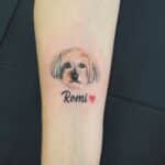 Vzpomínkové tetování zvíře pes se jménem na předloktí