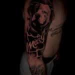Vzpomínkové tetování zvíře pes se jménem na rameno
